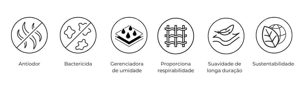 Afirmamos que não é normal, depois de um dia de calor, de transpiração, chegar ao final do dia com mau cheiro e isso ocorre devido a escolha de tecidos inadequados, como tecidos sintéticos. O resultado da tecnologia e a combinação dos nossos tecidos ao fio de fibra natural do micromodal, conseguimos chegar a esse resultado incrível que vem conquistando clientes ao redor de todo Brasil.